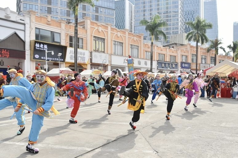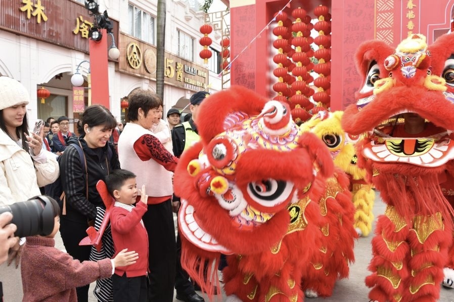 现场干豫喜庆,浓浓的年味扑面而来,灵动强壮的舞龙戎行穿梭其间,巨龙仿佛活机动现;执意有劲的醒狮,寓意稳固如意;甘愿磅礴的英歌舞温情奔放,干豫迥殊的风气文艺展演,引得现场不雅众阵阵喝彩,掌声不休。