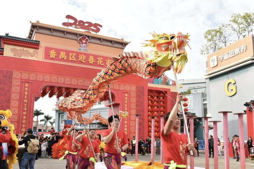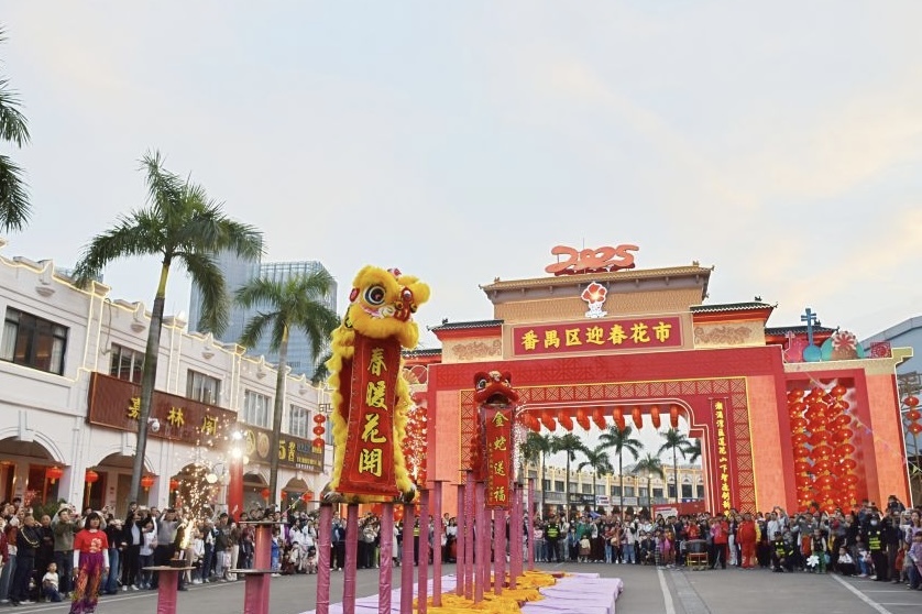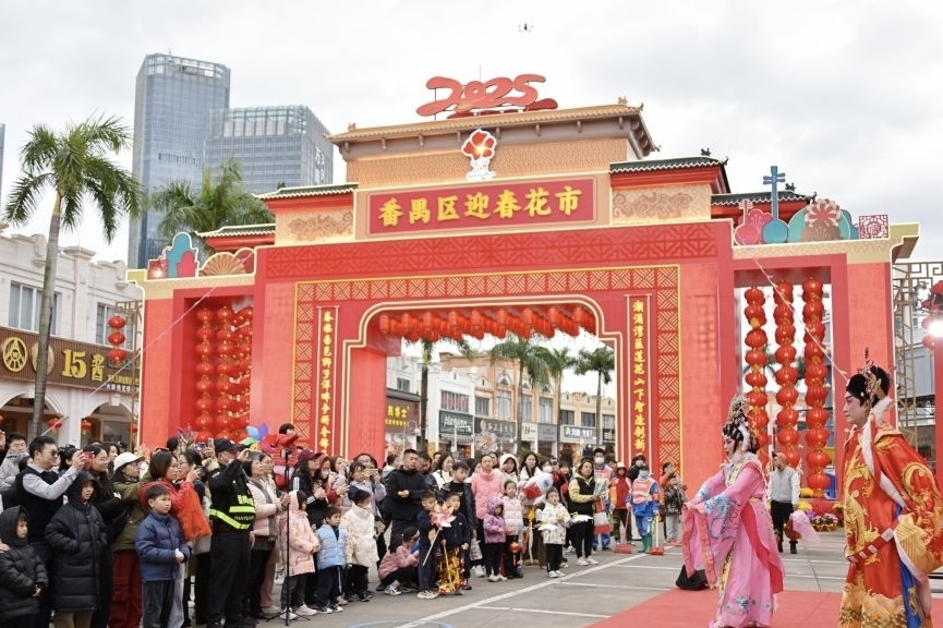 近日,2025年番禺区迎春花市在南村镇万博中心生意街举办。
